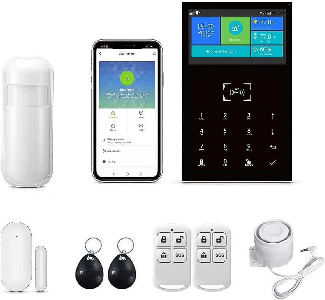 WiFi+GSM/4G Smart Home Alarm Security System Kit,4.3Inch IPS Screen with Touch Keyboard,APP Control,DIY Wireless Burglar Alert System,Door Sensor,NO Monthly Fee, Work with Alexa Google